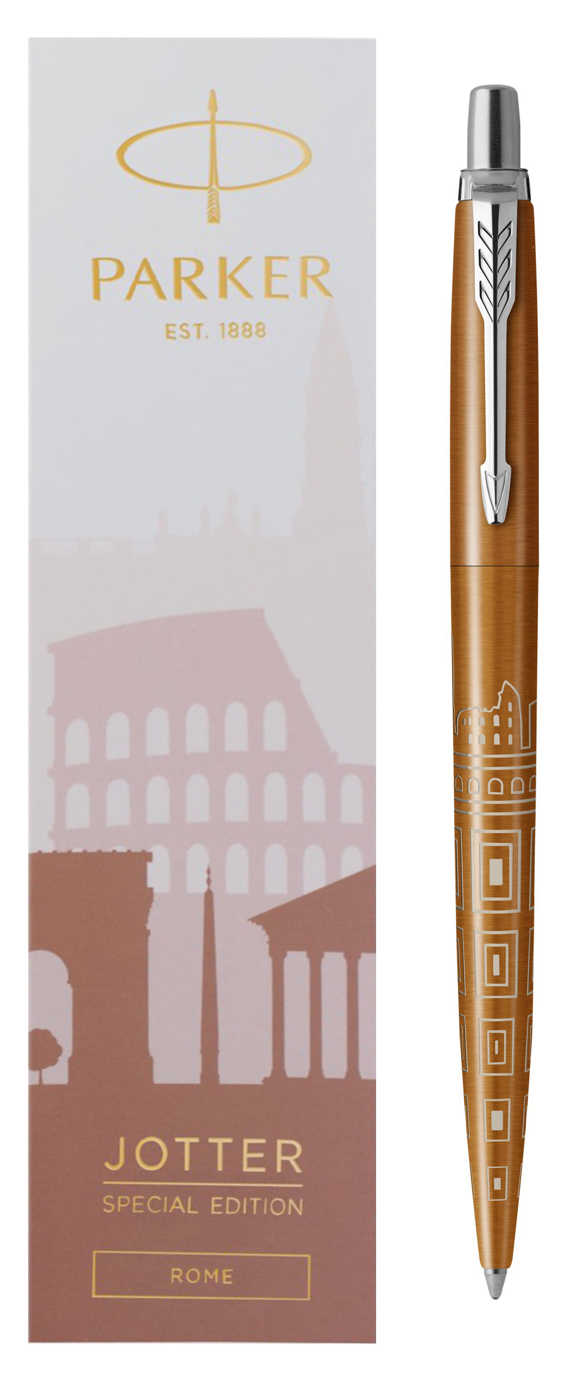 Ручка шариковая Parker Jotter Rome Bronze CT от официального дилера Parker в Новокуйбышевске. Вы можете дополнительно заказать гравировку, которая подчеркнет Вашу оригинальность и придаст памятность статусному подарку. Все ручки Паркер поставляются в фирменном футляре.